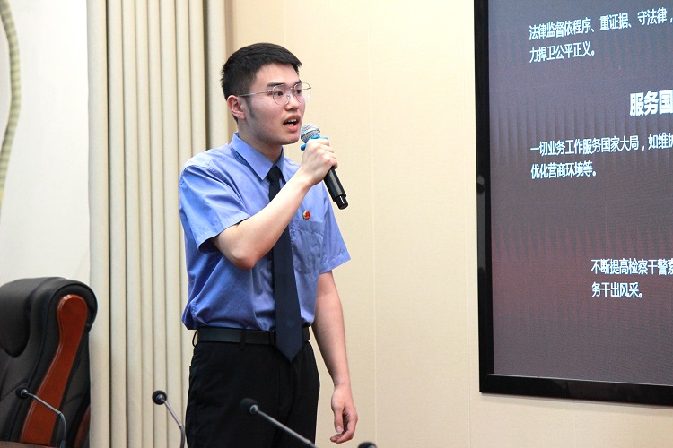 青年干警刘虎:分享了其参加2025年湖南省检察机关新进人员培训班的心得体会,并进行了传学讲学。表示将把培训精神转化为履职动力,以更高的标准要求自我,不断增强实践本领,努力成长为新时代检察尖兵。