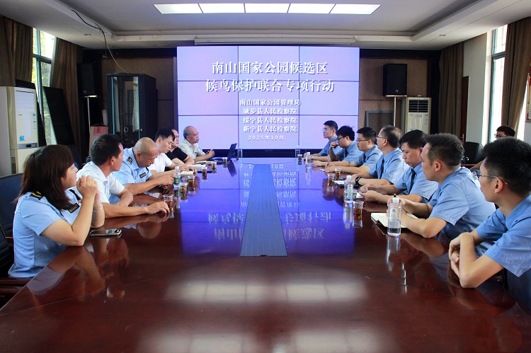 为推进南山国家公园候选区生态保护治理体系和治理能力现代化,今年8月,在邵阳市人民检察院的指导下,城步县检察院牵头推动与绥宁、新宁县检察院共同建立南山国家公园候选区检察公益诉讼跨区划协作机制,实现了线索移送、调查取证协作、生态修复协同、法治联合宣传等重点环节的贯通。为进一步发挥该机制优势,10月13日-16日,城步县检察院联合绥宁、新宁县检察院及湖南南山国家公园管理局,携手开展候鸟保护专项行动,为候鸟的迁徙、栖息保驾护航。